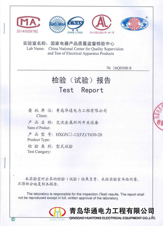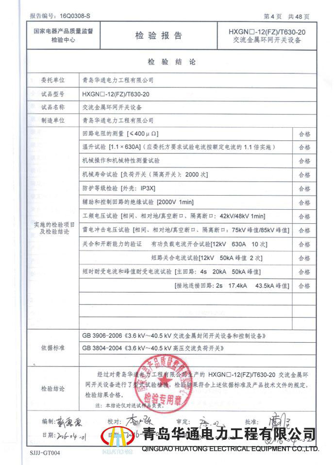 KYN28A-12高壓開關(guān)柜型式試驗報告
