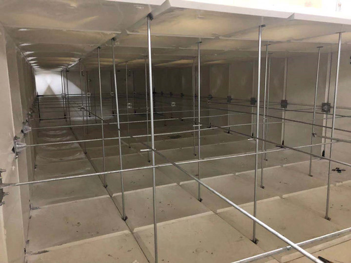 玻璃鋼水箱內部會有一些不銹鋼橫槽在里面,這些鋼筋擺放的位置不同,有的橫放、有的斜放,有的甚至是豎立的一根根柱子。玻璃鋼水箱內部有一根主拉筋,這種主拉筋的作用是水箱不易變形。大家知道水箱承受的重量是很大的,如果沒有其他的支撐,水箱就會變形,所以需要使用鋼筋來起到支撐的作用,大型的水箱間距會頻繁一點。斜筋的作用是為了分擔主拉筋的一些壓力,主柱是為了起到支撐的作用,為了頂住頂板,防止塌陷。拉筋簡單來說就是拉兩邊的水箱板的,為了固定水箱,水箱里的水灌滿了水箱不會漲破,對水箱起著重要作用。如果只用水箱板和膠條組成我們需要的水箱,雖然不滲水了,但是還不能盛水。因為盛水之后水箱會承受一個向外的張力,要加上拉筋系統受力,否則玻璃鋼水箱很容易撐壞。拉筋系統有圓鋼,內外拉筋板,對拉螺栓緊固。這樣玻璃鋼水箱就可以裝水了。