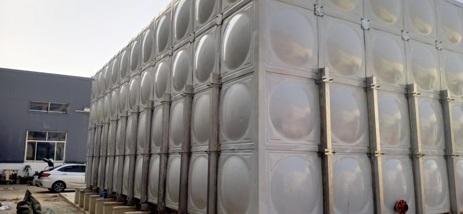 我司承接的山東省濟南市商河縣金城特紙制品有限公的玻璃鋼聚氨酯保溫水箱已安裝試水完畢。組合式玻璃鋼水箱當高度達到4米的時候,需要在水箱外部加豎向槽鋼外加固增強水箱的強度,同時也延長水箱使用壽命。