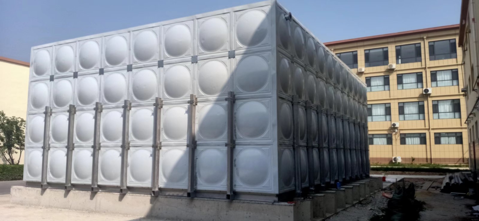 2、土建施工時先做好支墩,水箱四周及箱底單元板塊這間的連接縫要坐落在支墩上。