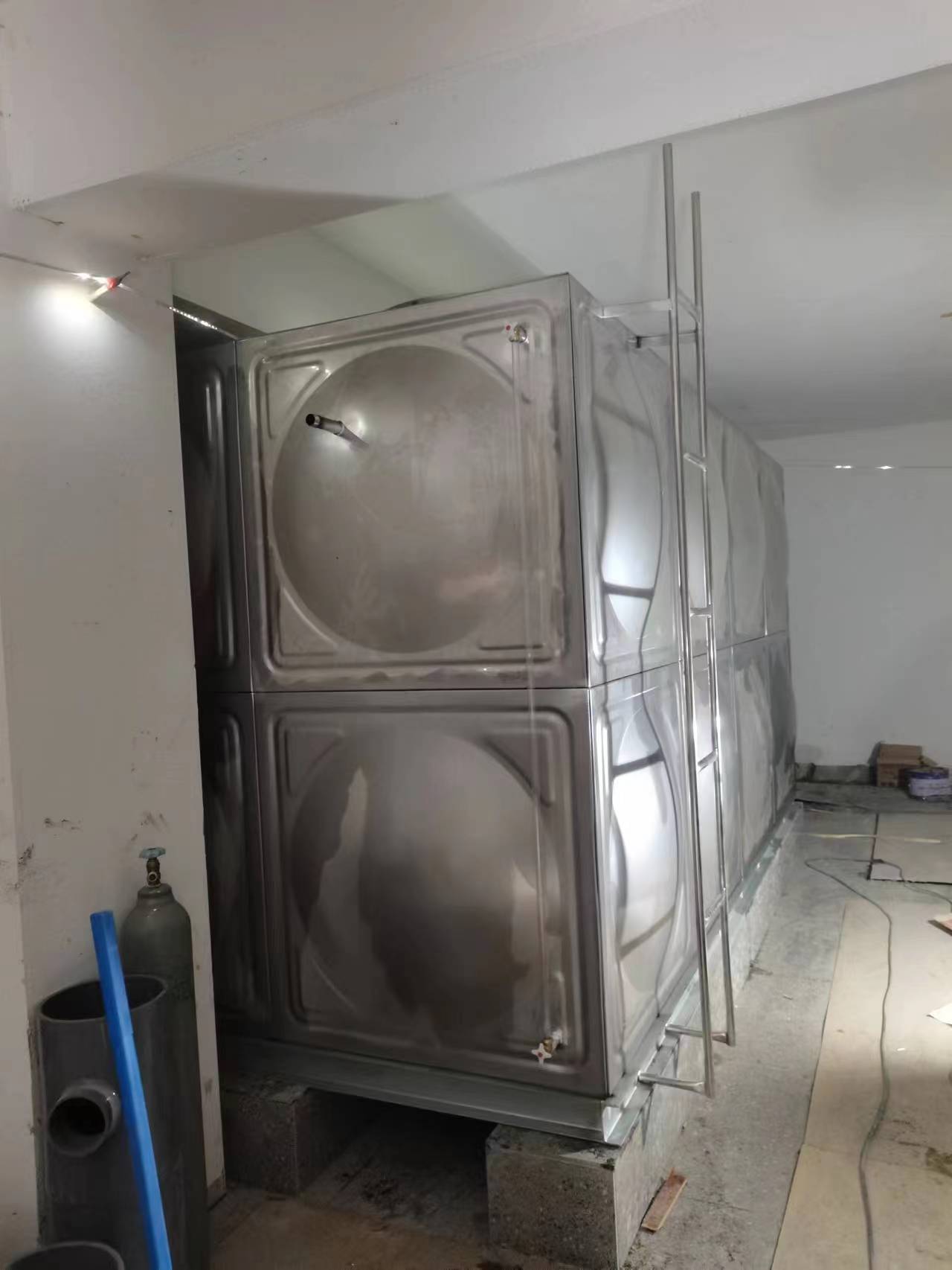 我司承接的山東省青島萊西市青島西大技工學(xué)校消防水箱項(xiàng)目已完工。此次保溫水箱內(nèi)部選用304不銹鋼材質(zhì),保溫選用的是聚氨酯加彩鋼板保溫。這是一種性能優(yōu)良的合成材料,是目前國際上性能較好的保溫材料。聚氨酯具有質(zhì)量輕、導(dǎo)熱系數(shù)低、耐熱性好、耐老化、容易與其它基材黏結(jié)、燃燒不產(chǎn)生熔滴等優(yōu)異性能,在歐美國家廣泛用于建筑物的屋頂、墻體、天花板、地板、門窗等作為保溫隔熱材料。